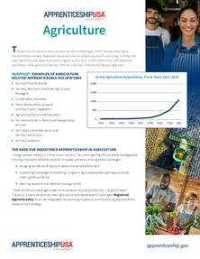 The agriculture industry faces complex workforce challenges, which include adapting to environmental changes. Registered Apprenticeship is a proven solution for recruiting, training, and retaining world-class agriculture talent in good, quality jobs. In 2024, there were 4,332 registered apprentices served in the agriculture industry, a 56 percent increase over the past 5 years.